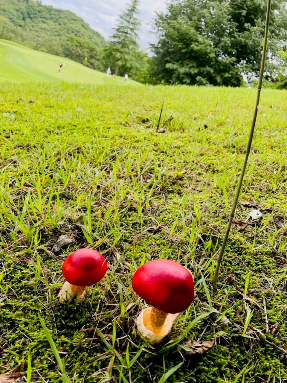 先日ゴルフに行ったらこんなキノコを見つけました。
