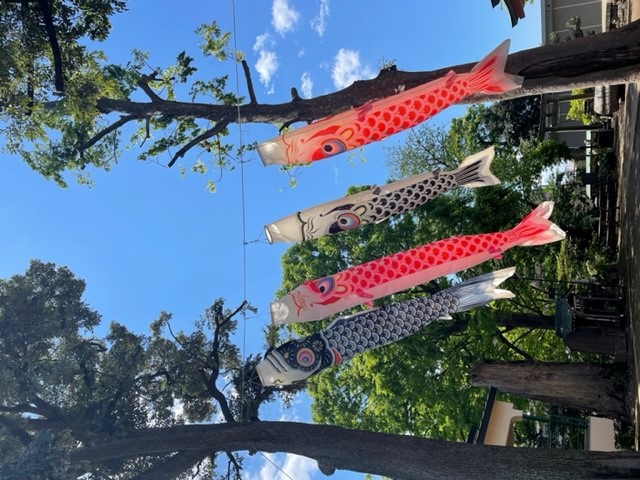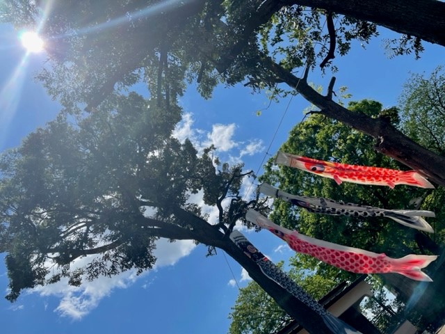 近所の神社では、大きな鯉のぼりがそよそよと風に吹かれていてとても見ごたえがありました。